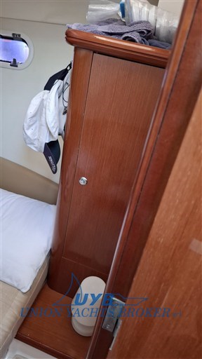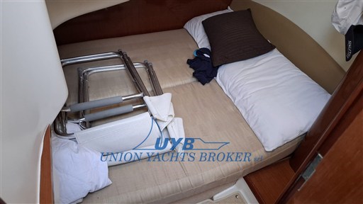 Prestige 32 Jahr 2010 - Boot Eignerkabine vorne mit Doppelbett, Zweibettkabine achtern. Elektrische Toilette und Kombüse mit großer Essecke am Eingang.