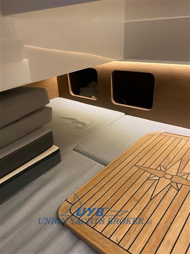 Mit zahlreichen Ausstattungsmerkmalen und großzügigem Stauraum bietet der Merry Fisher 895 beträchtliche Volumen für ein angenehmes Leben an Bord für bis zu 6 Personen. Am Bug des Bootes befindet sich die Kajüte des Besitzers, sehr hell dank der großen Fenster im Rumpf und eines Oberlichts sowie eine Koje für zwei Gäste. Zwei weitere Personen können die Nacht im Dinette verbringen, das in eine Doppelkoje umgewandelt werden kann. Das große Badezimmer, die funktionale Küche, die modulare Dinette und das Cockpit ermöglichen es Ihnen, komfortable, harmonische und gesellige Wochenenden zu verbringen.