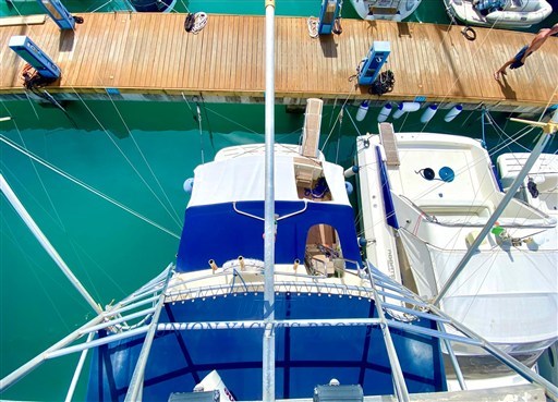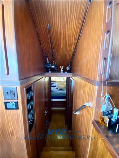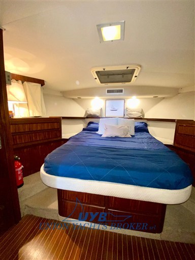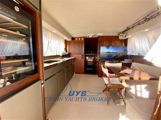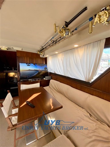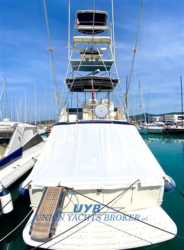 This 1990 model is ideal for both sport fishing and casual cruising. The presence of dedicated equipment such as the Tuna tower, Fishfinder, rod holders confirms its fisherman vocation.