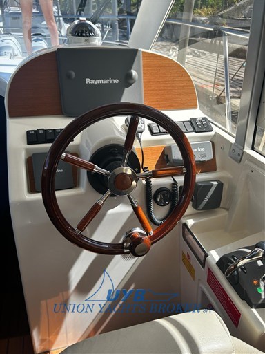 Merry Fisher 925 — отличное круизное судно, сочетающее философию скандинавских лодок, просторность яхт типа Flybridge и комфорт траулеров. Двойная каюта в носу, туалет и дополнительное место. Обеденный кабриолет в кровать.